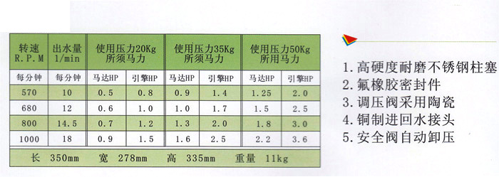 吸水量:7.5~15.5公升 最大压力:50kgf/cm²